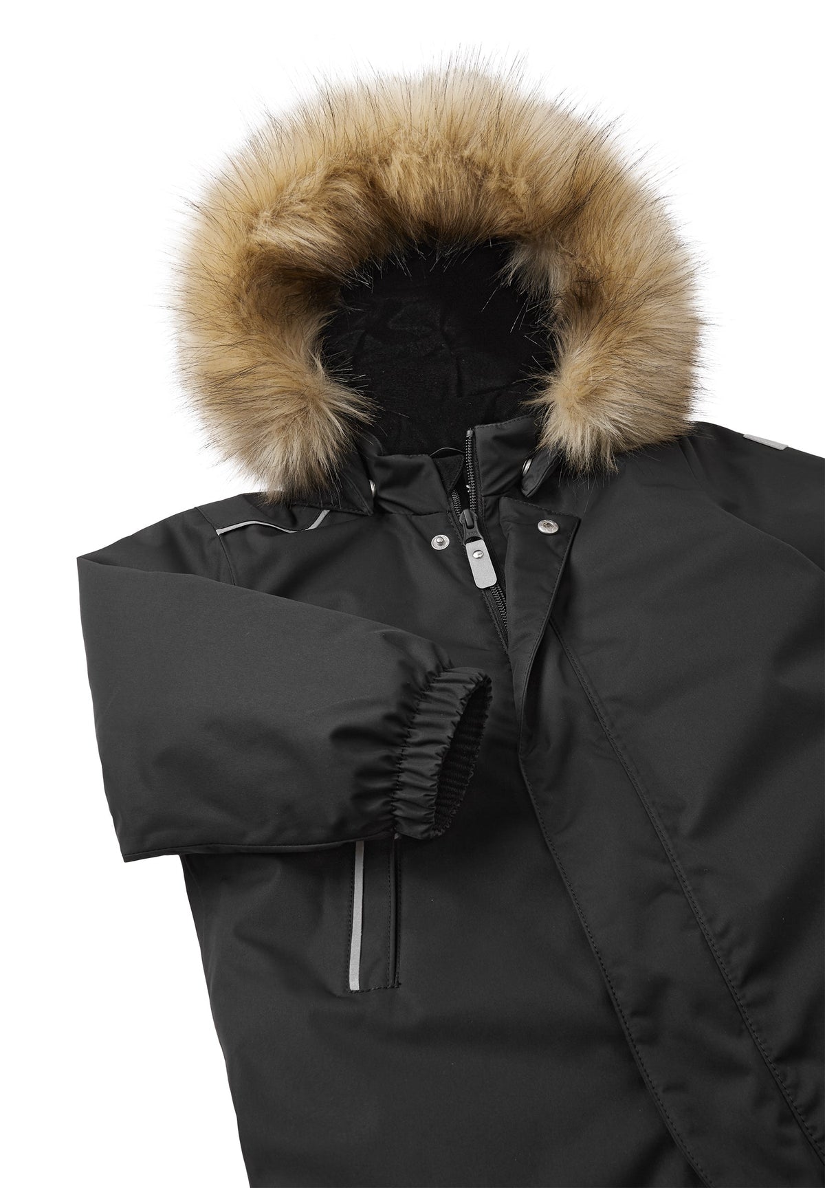 Reima-TEC warmer Ski-Anzug mit extra dicker Isolation im Po-Bereich. Kunstpelz separat abnehmbar. Pobereich extra isoliert.