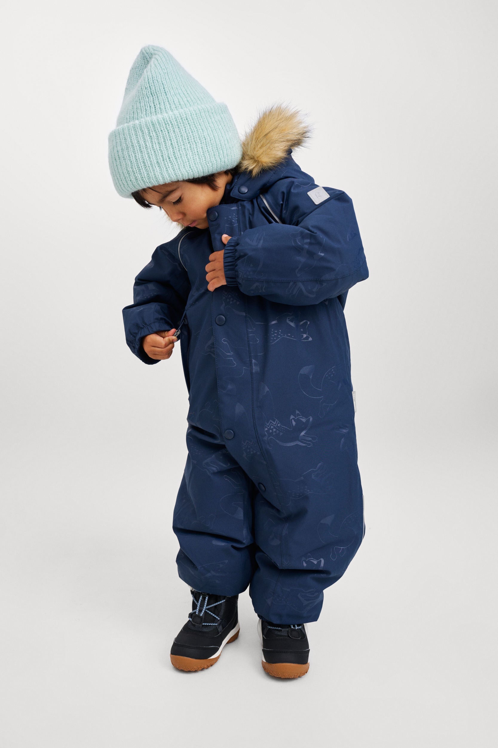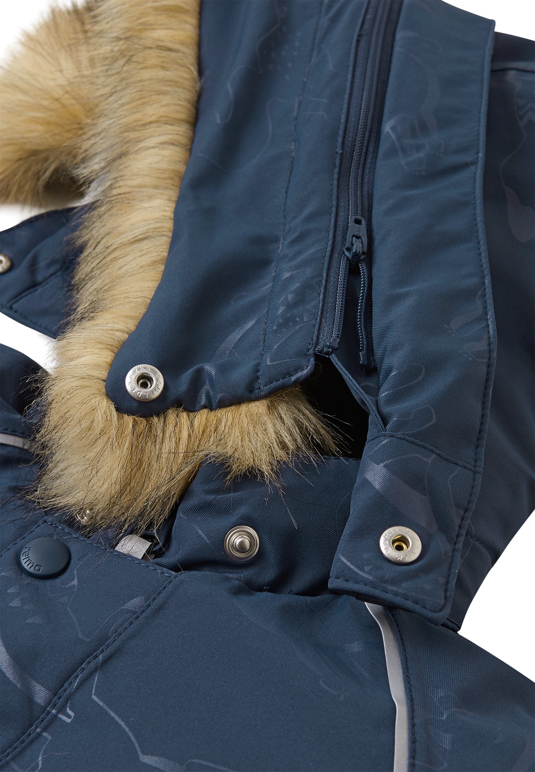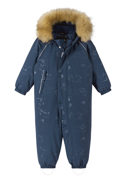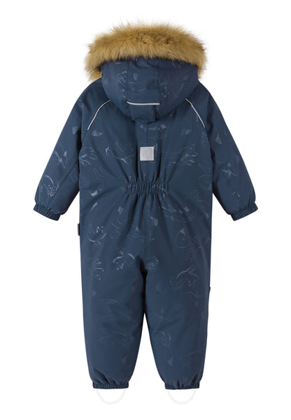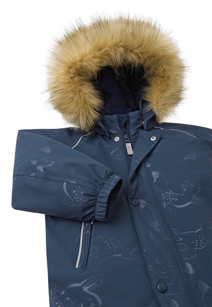 Reima-TEC extra warmer Ski-Anzug mit echten Daunen. Extra dicke Isolation im Po-Bereich. Kunstpelz separat abnehmbar.